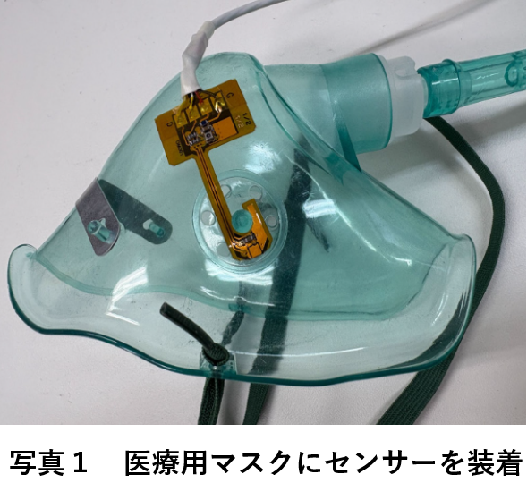 現状の課題:在宅や介護施設では、①介護者の観察と②患者の上肢の抑制がメイン対策です。病院では、上記対策に加えて、③血中酸素飽和度モニタリング④呼気終末二酸化炭素分圧のモニタリングで対応しているところもありますが、大変高価であり、タイムラグも大きくなります。 本技術内容:本技術は、超小型□2mmサイズの圧力&温度センサーをマスクの通気口に設置した構成で、患者の呼気の振幅(呼吸量)と周期性(呼吸頻度)をセンシングすることで、マスクの装着状態を検知しています。(写真1,2,3) 低コストかつ高信頼性を備えた医療機器向けシステムになります。